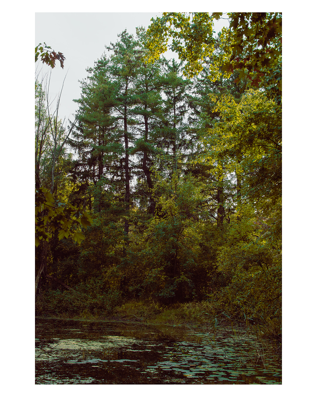 If I sound like I’m condemning the experience, that’s not my intention. I really loved being somewhere that was so similar, yet so different to places I had been to before. And while it wasn’t like I was frolicking through a redwood forest, or some misty mountain trail. The swampy woods inspired awe in their own way. I recall looking at the main murky pond on the site, surrounded by trees and their fallen branches. The branches, living and dead, seemed as though they were threatening to crash upon the pond like waves on a beach.